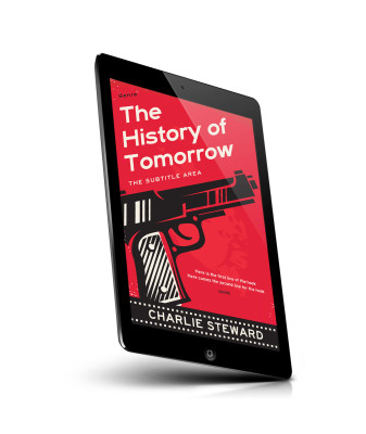 “A retro-styled book cover featuring an illustration of a handgun on a red background. Bold typography is used throughout.”