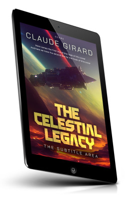 “A spaceship flies in a colorful, cosmic background with bold yellow text reading "The Celestial Legacy" and a smaller subtitle below.”