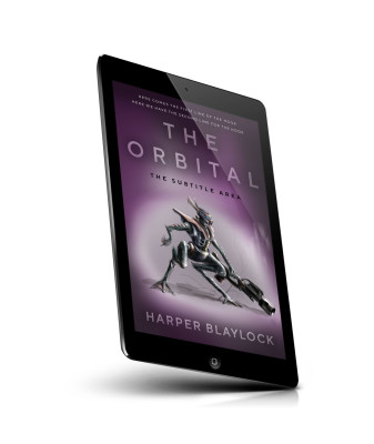 “An armored alien character holding a large weapon stands against a purple background under the title "The Orbital."”