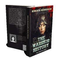 “A woman with wild hair and face paint, wearing armor, stands against a dark background. The title reads "The Warrior History."”