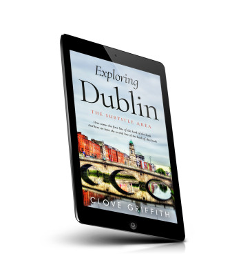 “A picturesque river view of Dublin with colorful buildings, a historic clock tower, and a bridge reflected in the water beneath a cloudy sky.”
