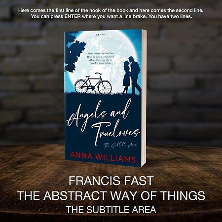 This book cover has 2 lines for the title, 1 line for the subtitle, 1 line for the author, 4 lines for the hook, and finally 1 line for the genre.