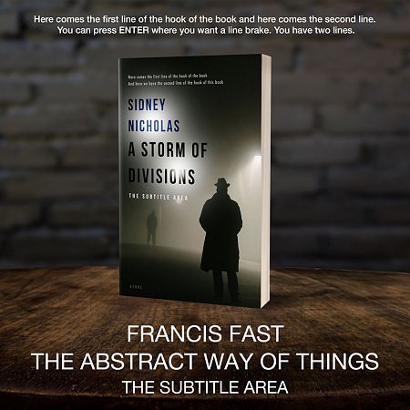 This book cover has 2 lines for the title, 1 line for the subtitle, 2 lines for the author, 2 lines for the hook, and finally 1 line for the genre.