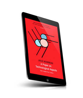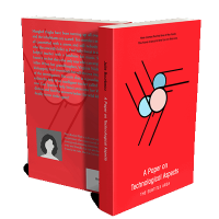 “Red book cover with abstract geometric shapes and white, black, and blue elements.”