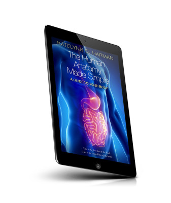 “A book cover featuring a transparent human torso highlighting the digestive system with a blue background.”