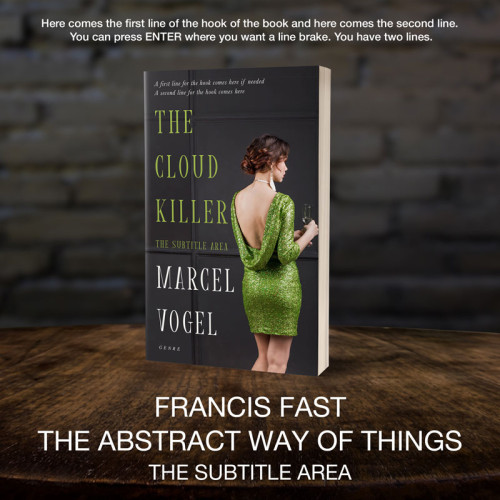 This book cover has 3 lines for the title, 1 line for the subtitle, 2 lines for the author, 2 lines for the hook, and finally 1 line for the genre.