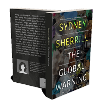 “An arrangement of plastic waste and debris serves as the backdrop for vibrant text about a book titled "The Global Warning."”