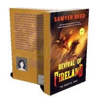 “Two fierce, fiery dragons dominate the cover, with flames and smoke in the background. Bold, striking title and author's name are prominent.”
