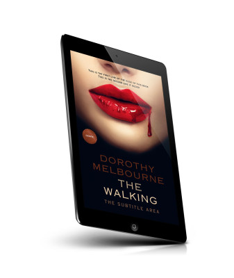 “Close-up of a woman's lips with red lipstick and a blood droplet. Book cover design.”