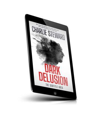 “Silhouette of a man's profile against a cloudy, abstract background, with bold red and black text.”