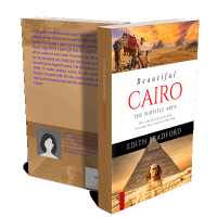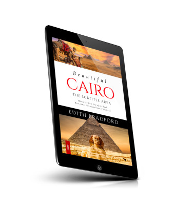 “A vibrant book cover featuring Cairo's Pyramids and the Sphinx, with a colorful sunset sky and a camel in the background.”