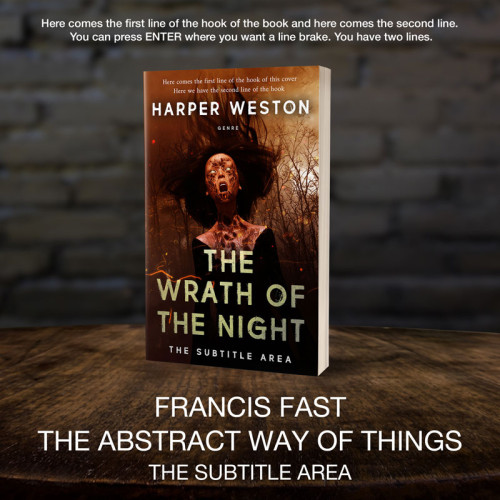 This book cover has 3 lines for the title, 1 line for the subtitle, 1 line for the author, 2 lines for the hook, and finally 1 line for the genre.