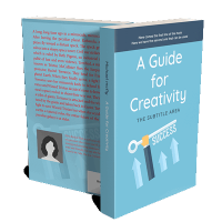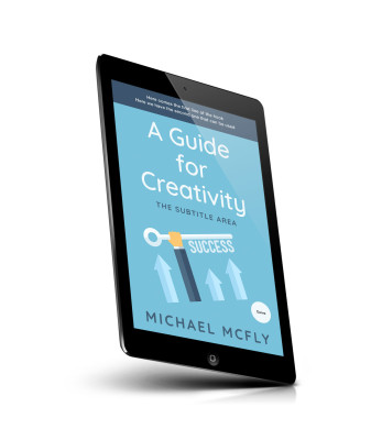 “A book cover titled "A Guide for Creativity" with a hand holding a key and arrows pointing upwards. Sky blue background.”