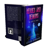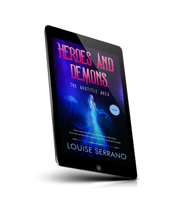 “A mystical woman in blue light stands with jellyfish nearby, under the title "Heroes and Demons" in a vibrant, otherworldly setting.”