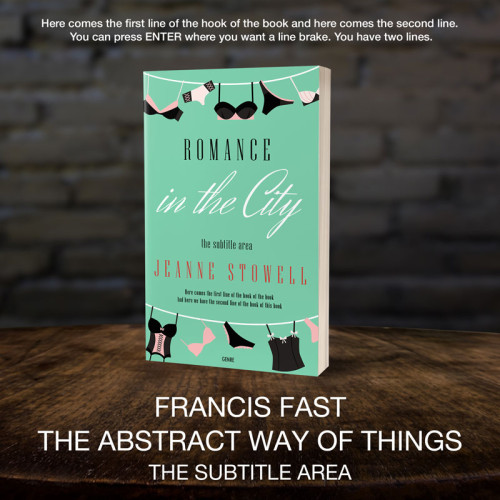This book cover has 2 lines for the title, 1 line for the subtitle, 1 line for the author, 2 lines for the hook, and finally 1 line for the genre.