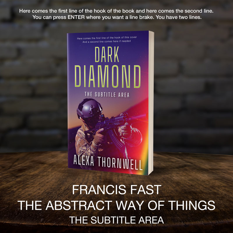 This book cover has 2 lines for the title, 1 line for the subtitle, 1 line for the author, 2 lines for the hook.
