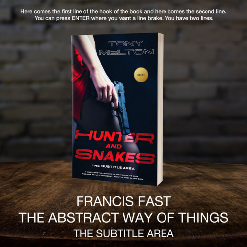 This book cover has 3 lines for the title, 1 line for the subtitle, 2 lines for the author, 2 lines for the hook, and finally 1 line for the genre.