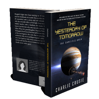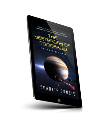 “A futuristic book cover with a planet and spacecraft in space. The title is prominently displayed in bold yellow text.”