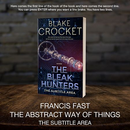This book cover has 3 lines for the title, 1 line for the subtitle, 2 lines for the author, 2 lines for the hook, and finally 1 line for the genre.