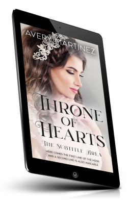 “A woman with a jeweled headpiece gazes downward on the cover of a book titled "Throne of Hearts."”