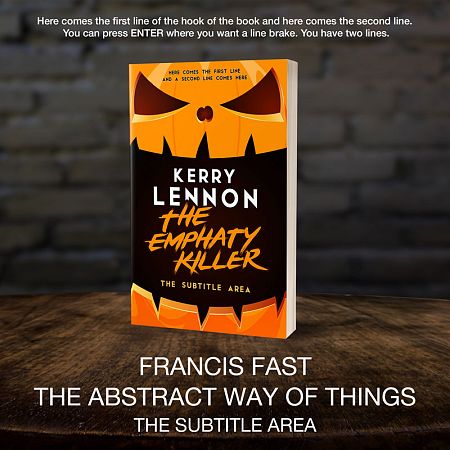 This book cover has 3 lines for the title, 1 line for the subtitle, 2 lines for the author, 2 lines for the hook.