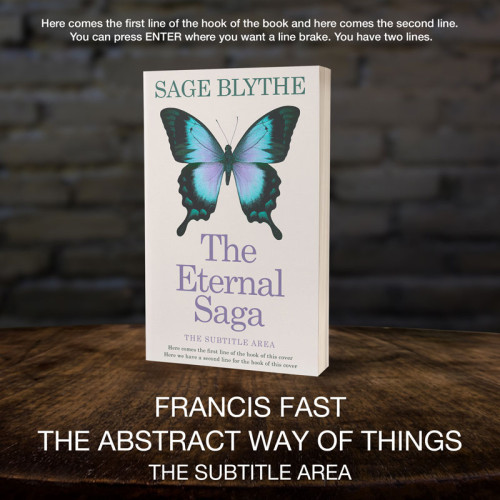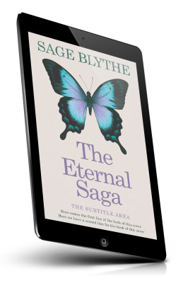 “A butterfly with vibrant turquoise and purple hues on a cover with "The Eternal Saga" displayed prominently.”