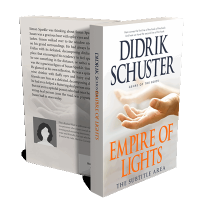 “A pair of hands are gently positioned with one facing upwards and the other downwards on the cover of a book titled "Empire of Lights".”