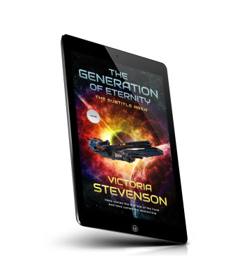 “A spaceship flies near planets against a colorful cosmic backdrop.”