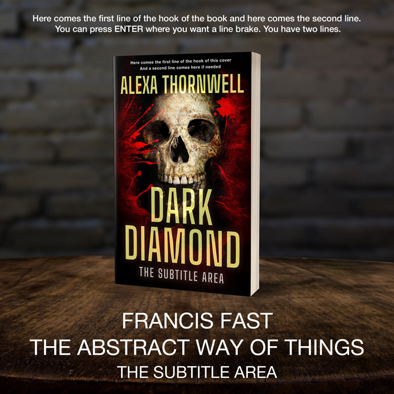 This book cover has 2 lines for the title, 1 line for the subtitle, 1 line for the author, 2 lines for the hook.