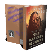 “A horror-themed book cover featuring a zombie-like face with sharp teeth and dark, sunken eyes. The background has an eerie, fiery glow.”