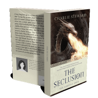“A dragon breathes fire through a circular opening, with an ornate border below. The cover has a fantasy theme with a title and author name displayed.”