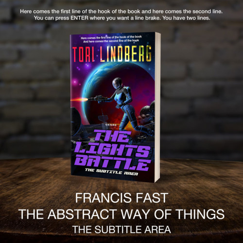 This book cover has 3 lines for the title, 1 line for the subtitle, 1 line for the author, 2 lines for the hook, and finally 1 line for the genre.