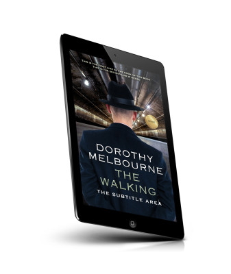 “A man in a black hat stands facing a tunnel with a metallic ceiling, featured on the cover of a book.”