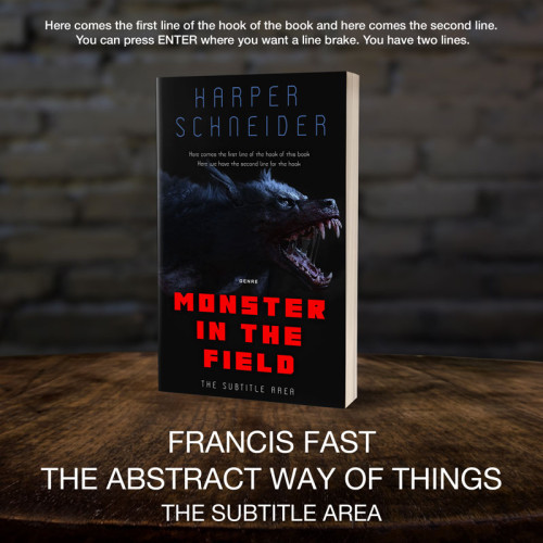 This book cover has 3 lines for the title, 1 line for the subtitle, 2 lines for the author, 2 lines for the hook, and finally 1 line for the genre.