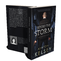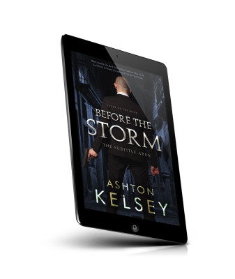 “A man in a suit holding a gun stands in a dark alleyway with the title "Before the Storm" prominently displayed.”