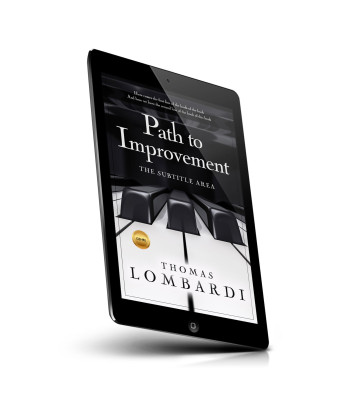 “Black and white piano keys with a book title, subtitle, and author's name displayed on the cover.”