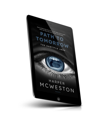 “A blue eye with a gaping mouth in its center dominates the grayscale cover of "Path to Tomorrow" by Harper Mcweston.”