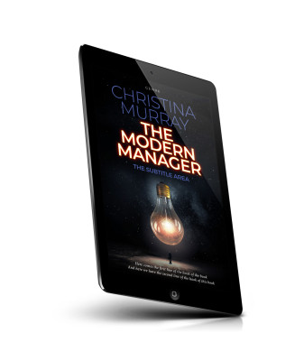 “A glowing lightbulb hangs against a starry background. The title reads "The Modern Manager" by Christina Murray.”