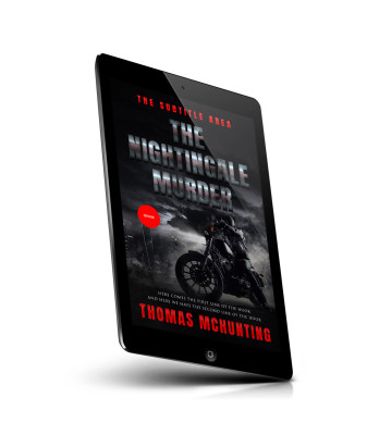 “A shadowy figure on a motorcycle against a dark, foggy cityscape backdrop, creating a mysterious and suspenseful atmosphere.”