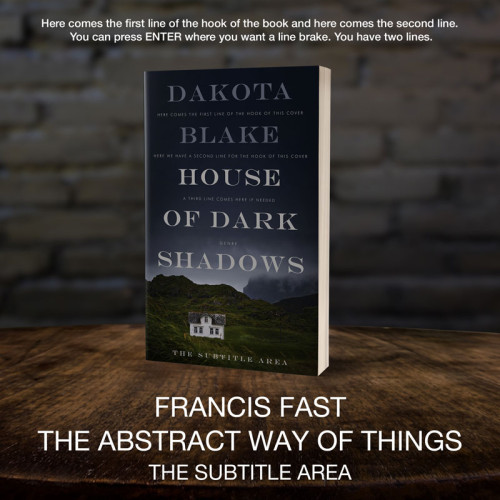 This book cover has 3 lines for the title, 1 line for the subtitle, 2 lines for the author, 3 lines for the hook, and finally 1 line for the genre.