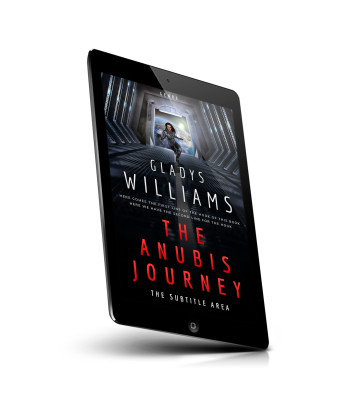 “A figure in a futuristic suit stands in a sci-fi corridor, beneath a large text title reading "The Anubis Journey".”
