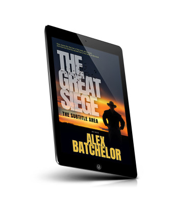 “Silhouette of a man in a hat against a sunset with large, bold title text above.”