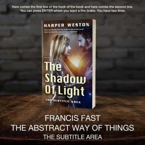 This book cover has 3 lines for the title, 1 line for the subtitle, 1 line for the author, 2 lines for the hook, and finally 1 line for the genre.