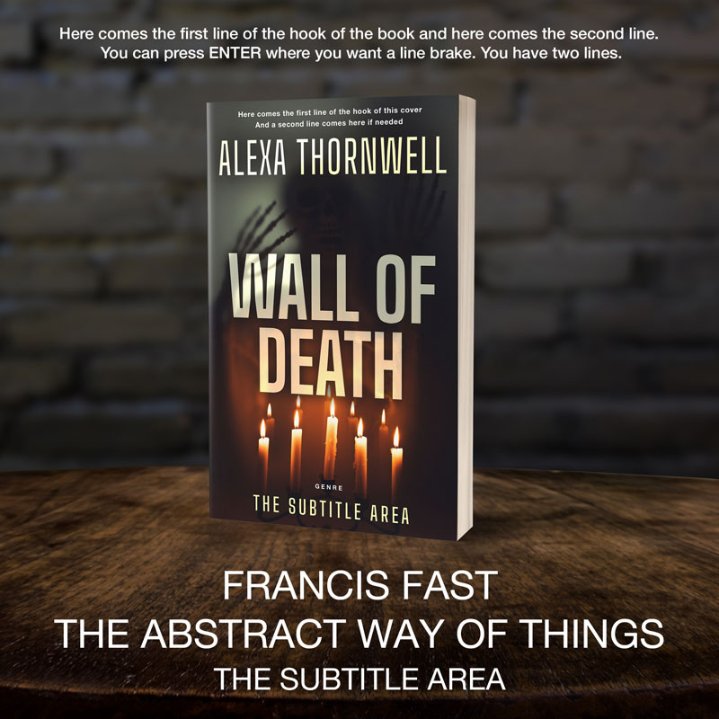 This book cover has 2 lines for the title, 1 line for the subtitle, 1 line for the author, 2 lines for the hook, and finally 1 line for the genre.