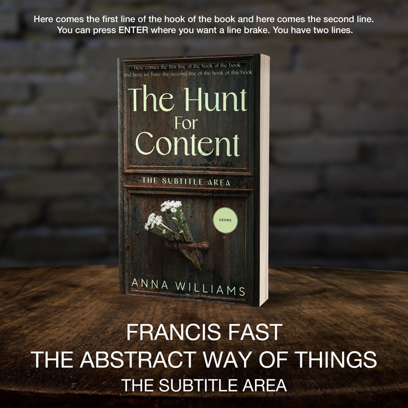 This book cover has 3 lines for the title, 1 line for the subtitle, 1 line for the author, 2 lines for the hook, and finally 1 line for the genre.