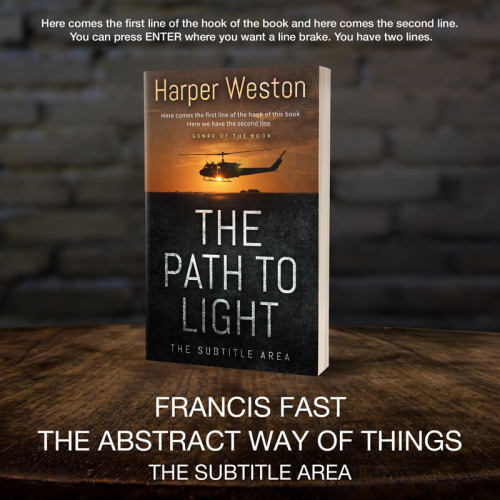This book cover has 3 lines for the title, 1 line for the subtitle, 1 line for the author, 2 lines for the hook, and finally 1 line for the genre.
