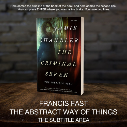 This book cover has 3 lines for the title, 1 line for the subtitle, 2 lines for the author, 2 lines for the hook, and finally 1 line for the genre.