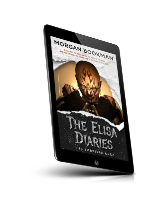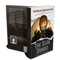 “A torn paper effect reveals a bald, tattooed figure in a hood, standing behind the title "The Elisa Diaries" against a dark textured background.”