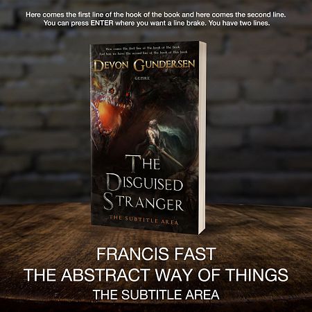 This book cover has 3 lines for the title, 1 line for the subtitle, 1 line for the author, 2 lines for the hook, and finally 1 line for the genre.