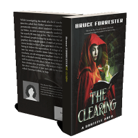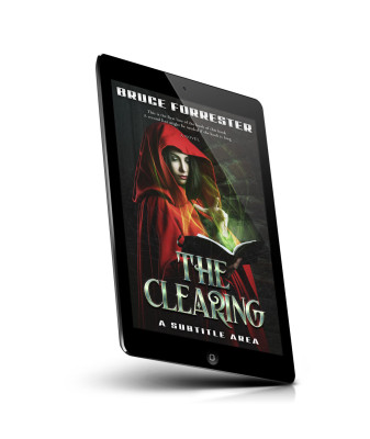 Tags: cloak, mystery, fantasy, enchantment, magic, red cloak, woman, book, glowing, dark forest, reading, mystical, light, shadows, novel, green light, cover art, thriller, enigmatic, spellbook